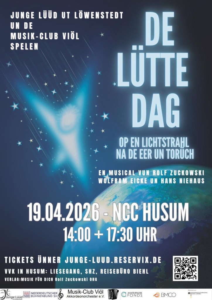 Moin tosamen, af nu gifft dat Korten för unse beiden Vörstellungen vun „De lütte Dag“ an de 19.04.2026 in‘t NCC in Husum. Korten gifft dat hier.